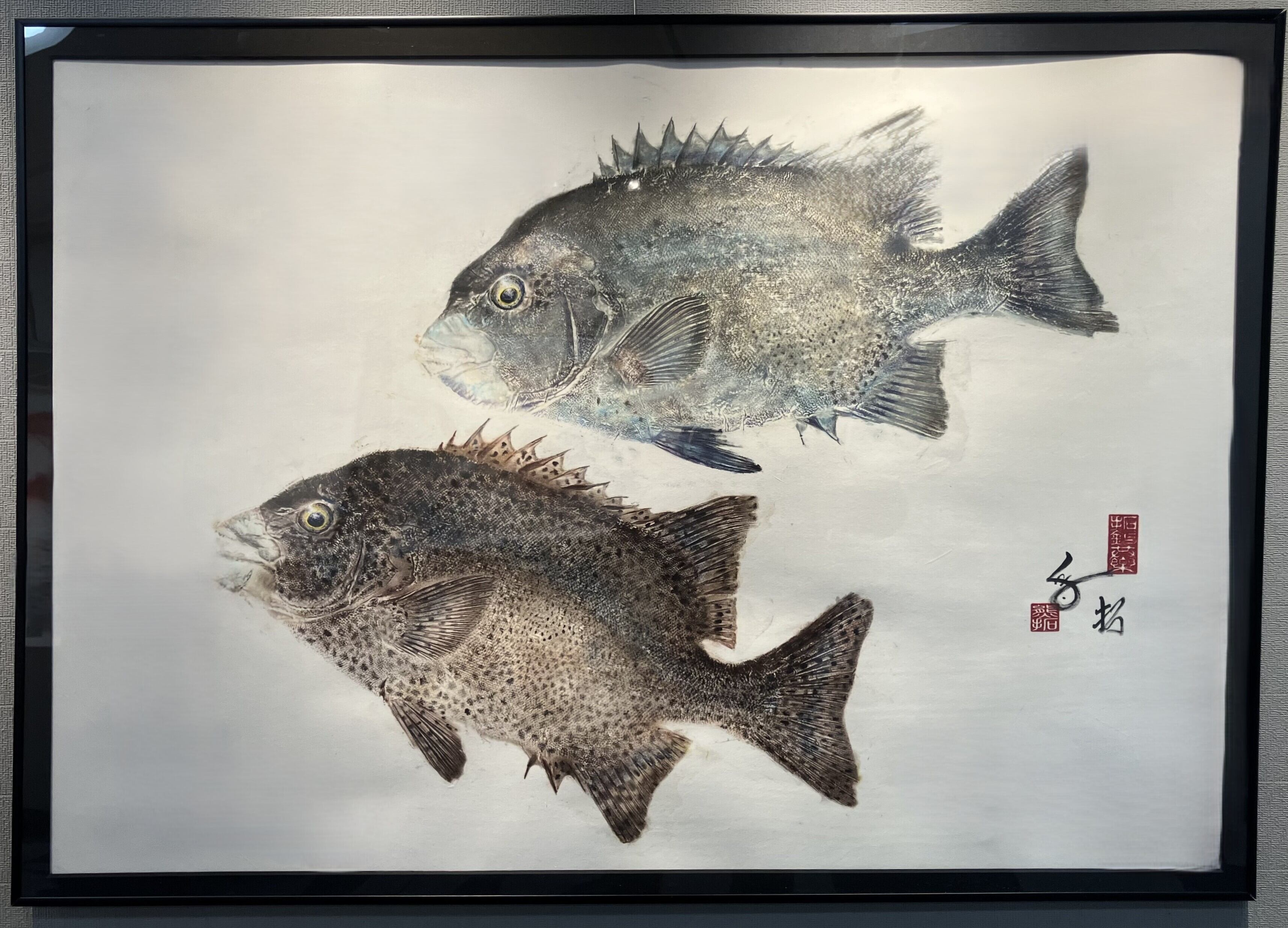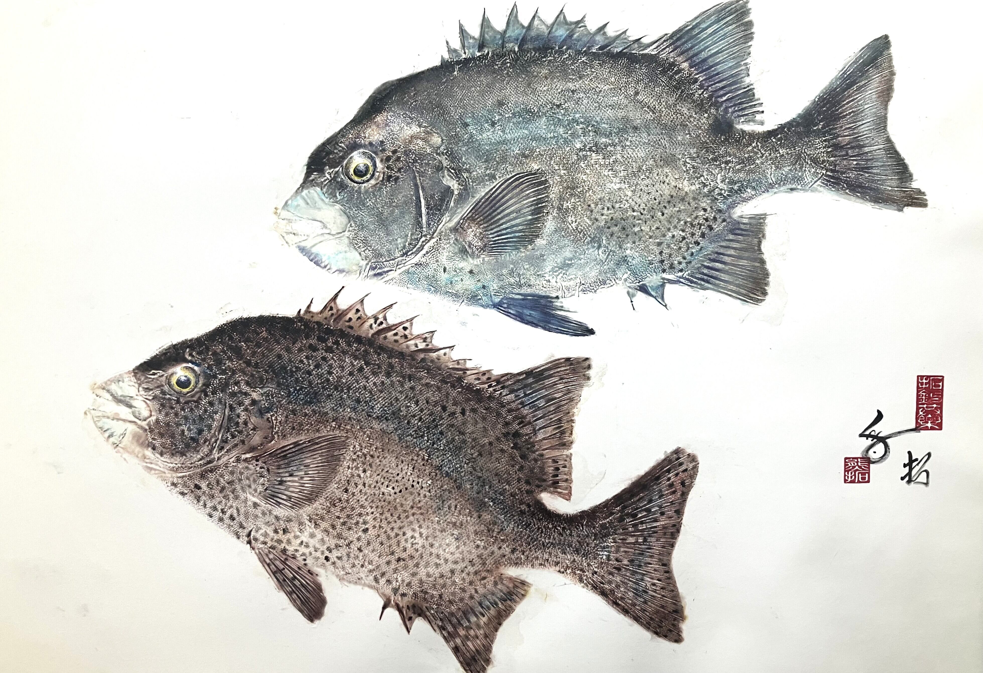 屋久島で釣れた60㎝オーバーの雌雄石垣鯛の間接法によるカラー魚拓です。